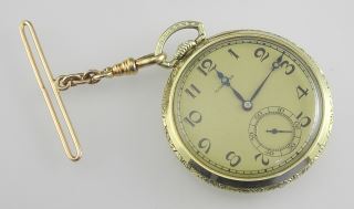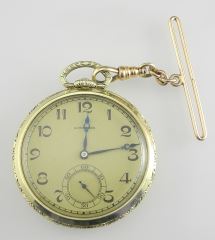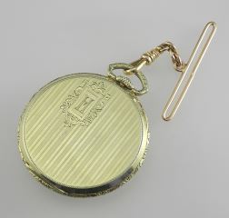 Longines 14K Gold Filled Pocket Watch with 14K (marked) Gold Bar (3. 6g), 1 3/4" Diameter.