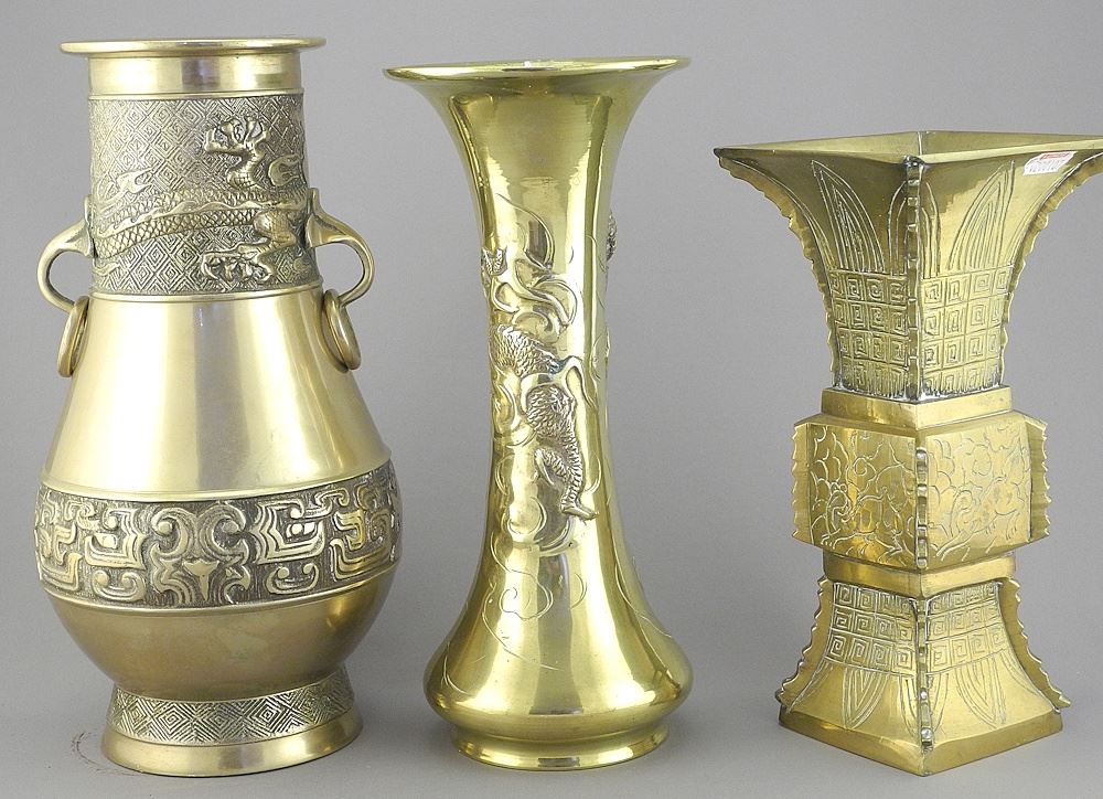 Three Asian Brass 20th C. Vessels, 8 1/4 - 10 1/8"h.