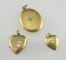 Three Gold Lockets: 1 1/4" 10K / 7/8" 9K / 5/8" 15K (each marked)