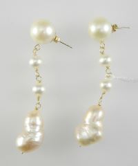 LOT 131 Pair of 14K (marked) Gold & Baroque Pearl Earrings, 2 1/8"h, 9g. Estimate: $60 - $100 Sold For: $70 Auction Date: Tuesday, June 10 2025 at 4:00 PM