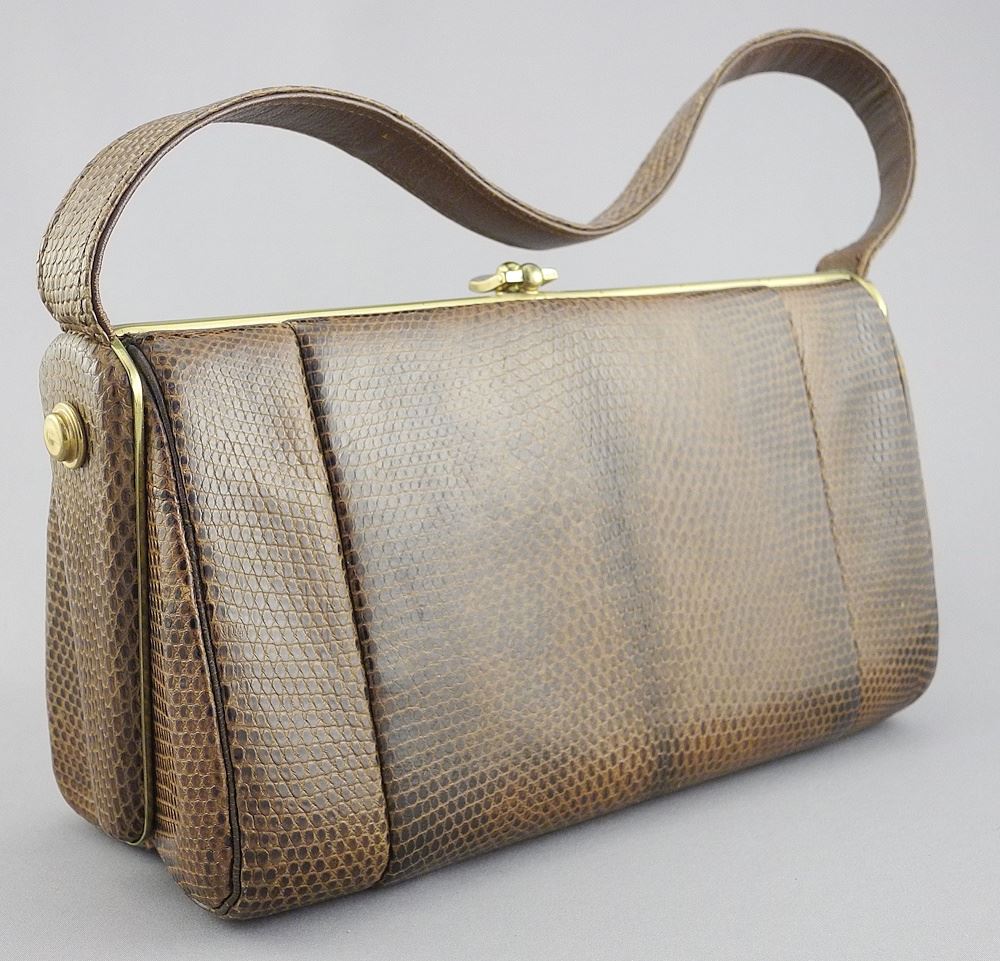 LOT 238 Harrod's London Snake Skin Evening Bag, 9 1/2"w. Estimate: $100 - $150 Auction Date: Tuesday, June 10 2025 at 4:00 PM