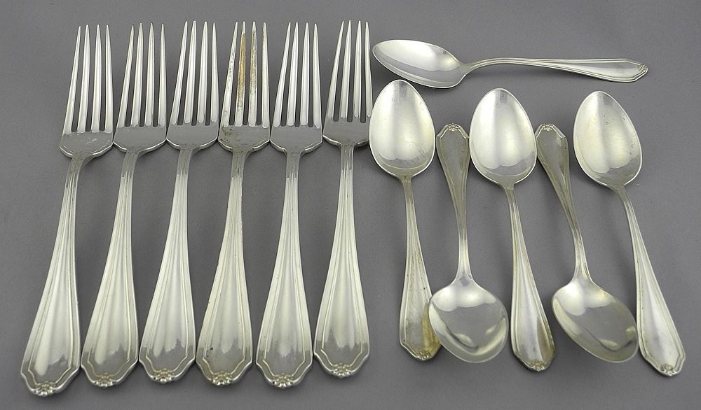LOT 310A Six Sterling (marked) Silver Forks & Six Spoons, 5 3/4" & 7 1/2"L, 475g Estimate: $300 - $400 Sold For: $500 Auction Date: Tuesday, June 10 2025 at 4:00 PM
