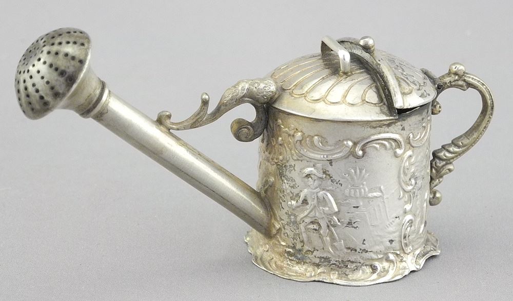 Miniature European Silver (marked) Watering Can Table Lighter, 3 5/8"L, 44g.