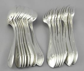 Eighteen Pieces Continental Silver Flatware, 734g (9 Spoons & 9 Forks). -
