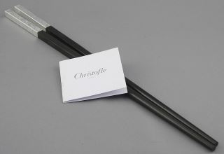 LOT 263 Pair of Christofle Ebony & Silver Plate Chop Sticks in Original Box. Estimate: $60 - $100 Sold For: $60 Auction Date: Tuesday, June 10 2025 at 4:00 PM