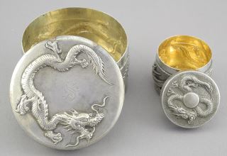LOT 276 Two Chinese Export Silver Boxes, Marked WH (Wang Hing) 90, 1 1/8 & 1 5/8"h, 111g. Estimate: $150 - $200 Sold For: $600 Auction Date: Tuesday, June 10 2025 at 4:00 PM