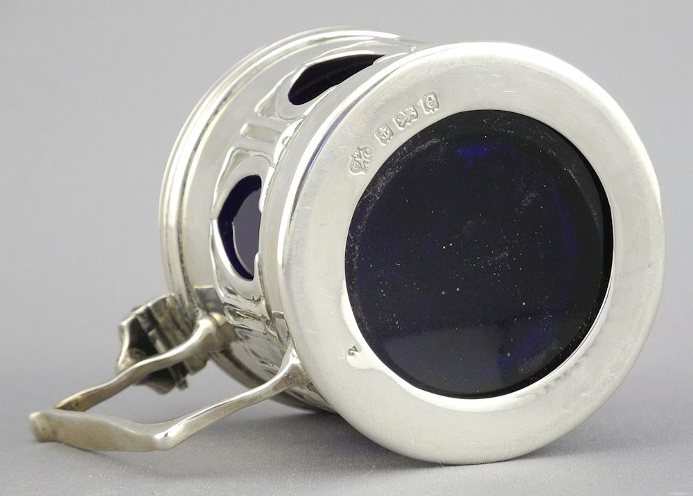 Arts & Crafts-Style hallmarked Mustard Pot & Plated Spoon, C.1904, 73g.
