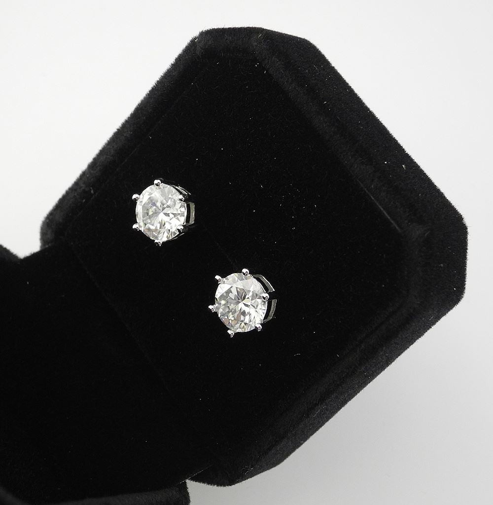 LOT 285 2ct Moissanite Stud Earrings, Sterling Silver with White Gold Overlay, with COA. Estimate: $50 - $75 Sold For: $120 Auction Date: Tuesday, June 10 2025 at 4:00 PM
