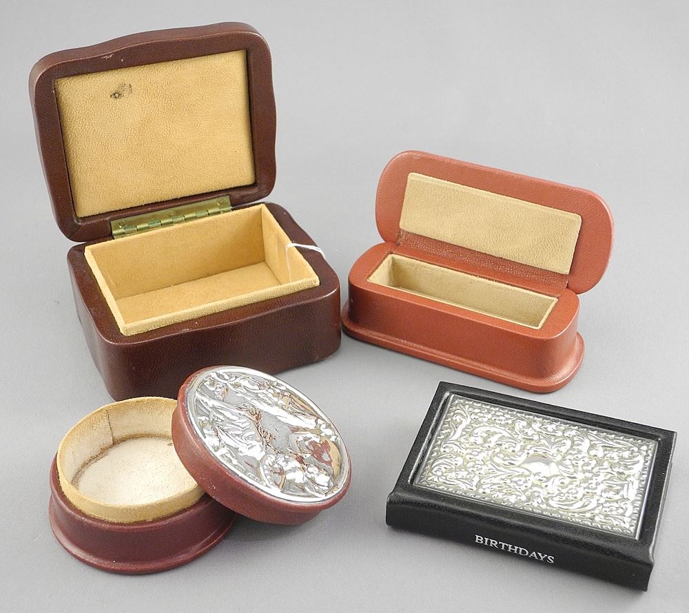 3 Hallmarked Silver Mounted Boxes: John Bull Ltd./London & Birthday Book, 2 1/2 - 3 3/4" Wide.