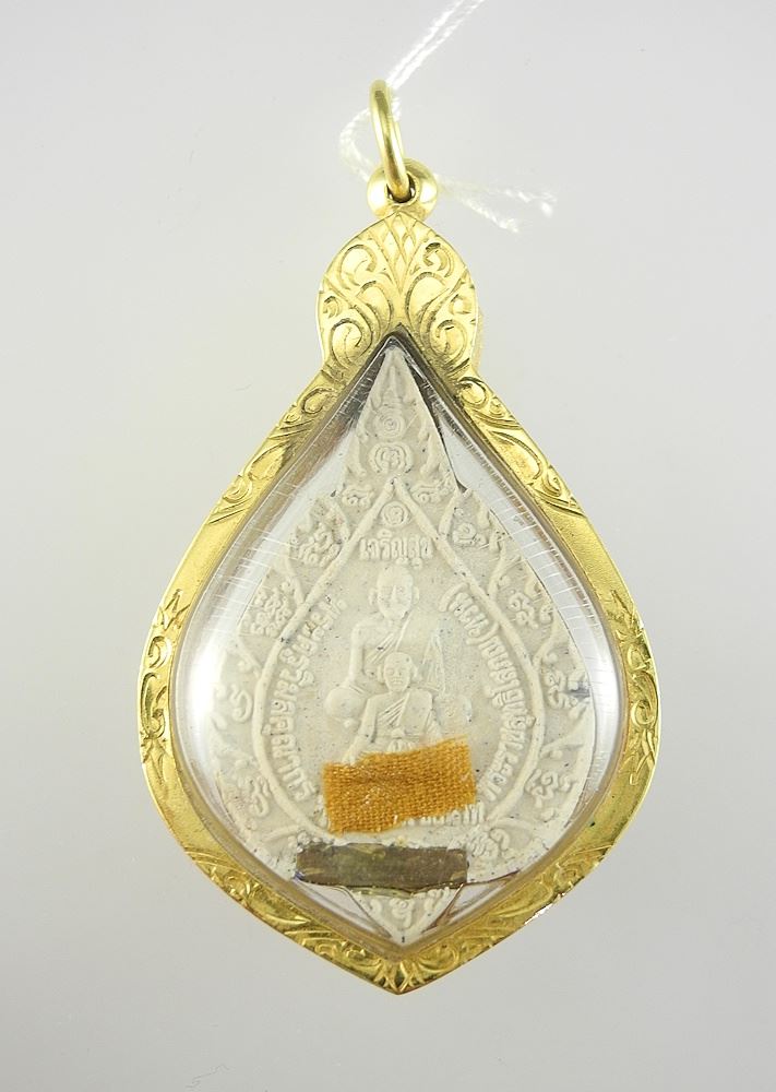 LOT 87 Southeast Asian 14K (tested) Gold Framed Votive Pendant, TW 9.4g (loss noted). Estimate: $100 - $150 Sold For: $160 Auction Date: Tuesday, June 10 2025 at 4:00 PM