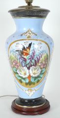 19th Century Floral Painted Porcelain Vase Converted to a Lamp, 30" to Finial