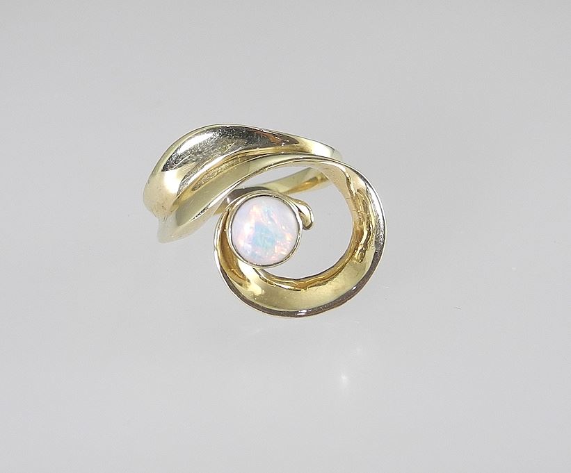 14K (marked) Gold & Opal Linear Ring , Size 5 1/2, 5.7g.