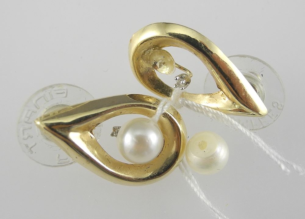Pair of 14K (tested) Gold & Pearl Earrings, 7/8"h, TW 1.6g.