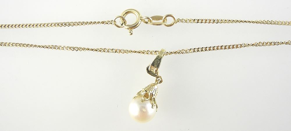 LOT 124 10K Curb Link 18" Chain with Cultured Pearl Pendant, Chain 2.49g. Estimate: $150 - $250 Sold For: $120 Auction Date: Tuesday, June 10 2025 at 4:00 PM