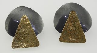 LOT 81 Pair of 18K (marked) Gold & Metal Earrings Marked IB (Idar Bergseth) on Back, 17.5g. Estimate: $200 - $300 Sold For: $500 Auction Date: Tuesday, June 10 2025 at 4:00 PM