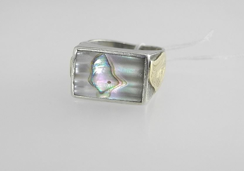 LOT 215 Northwest Coast Silver Gold & Mother of Pearl Ring, Size 9, 11.9g, Monogrammed MB. Estimate: $100 - $150 Sold For: $140 Auction Date: Tuesday, June 10 2025 at 4:00 PM