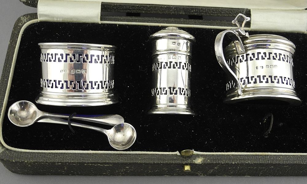 Hallmarked Silver Condiment Set, 61g, 8"w.