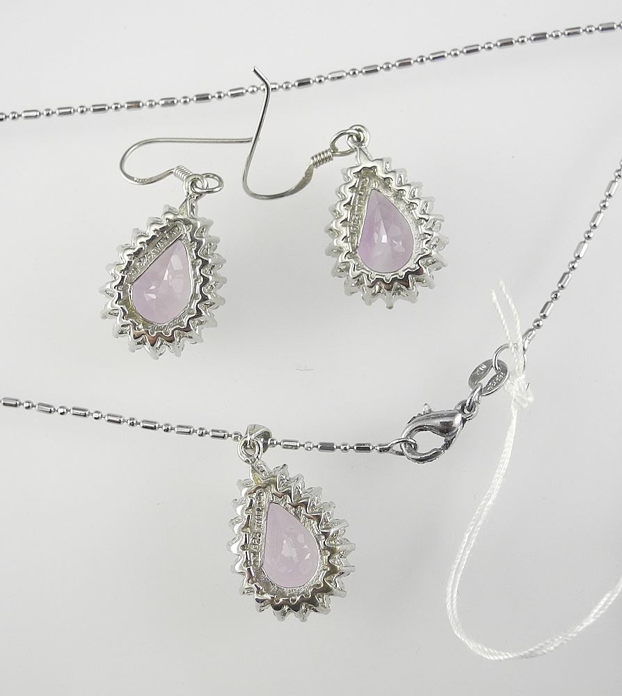 Sterling (marked 925) & 18K Gold Plated Amethyst Necklace (15"L) & Earrings, TW 15.4g.