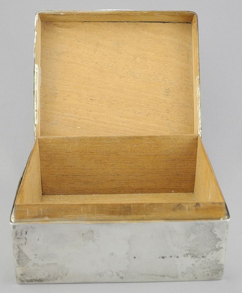 LOT 5 Hallmarked Silver Cigarette Box, 2 3/4" x 5 1/2" x 4 1/2", TW 560g. Estimate: $250 - $350 Sold For: $300 Auction Date: Tuesday, June 10 2025 at 4:00 PM