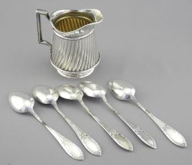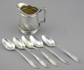 Continental .800 Silver Creamer & 5 Coffee Spoons, 113g.