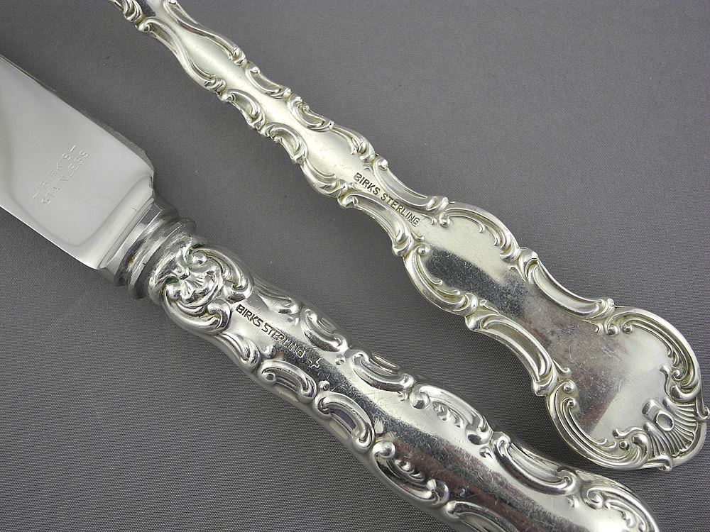 LOT 280 Canteen of Birks Sterling Silver Flatware: 665g Solid / 756g Loaded, Seven Pcs Plate. Estimate: $800 - $900 Sold For: $850 Auction Date: Tuesday, June 10 2025 at 4:00 PM