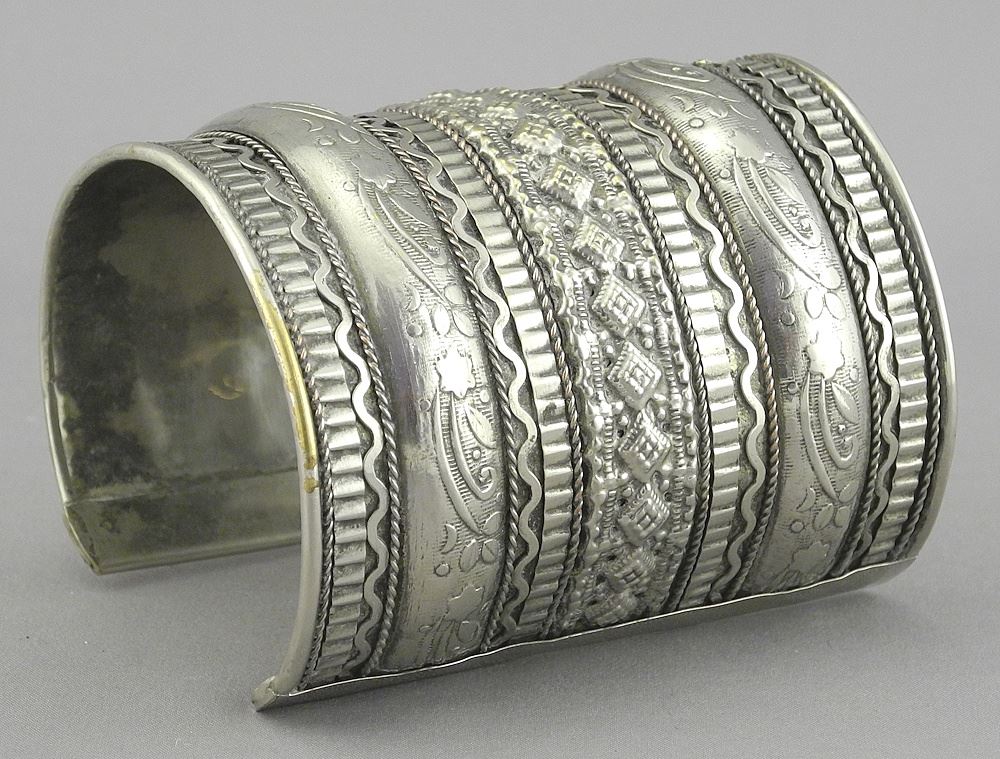 Ethnic Silver Alloy Cuff Bracelet, 3 1/8"L, 50g.