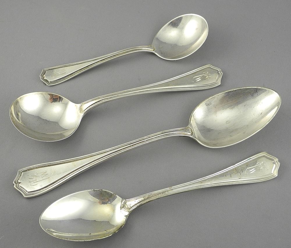 LOT 22 Twelve Place Settings Birk Sterling Silver Flatware, 4347g Solid / 1575 Loaded. Estimate: $3,000 - $4,000 Sold For: $4,650 Auction Date: Tuesday, June 10 2025 at 4:00 PM