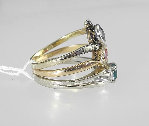 LOT 75 14K (each marked 585) Multi Gold Ring Set with Precious Stones, Size 7 1/4, 8.4g. Estimate: $600 - $900 Sold For: $600 Auction Date: Tuesday, October 28 2025 at 4:00 PM
