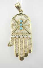 14K (tested) Gold Filigree "Hand" Pendant, 1 3/4"h, 3.4g.