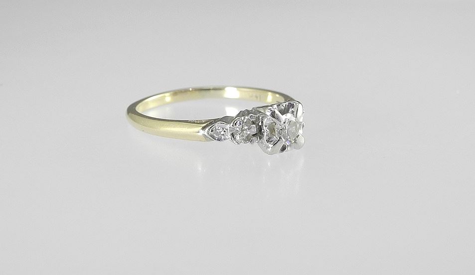 LOT 17 14K (marked) Gold & Diamond Shoulder Set Ring, Size 7 1/2, 2.9g. Estimate: $200 - $300 Sold For: $200 Auction Date: Tuesday, October 28 2025 at 4:00 PM