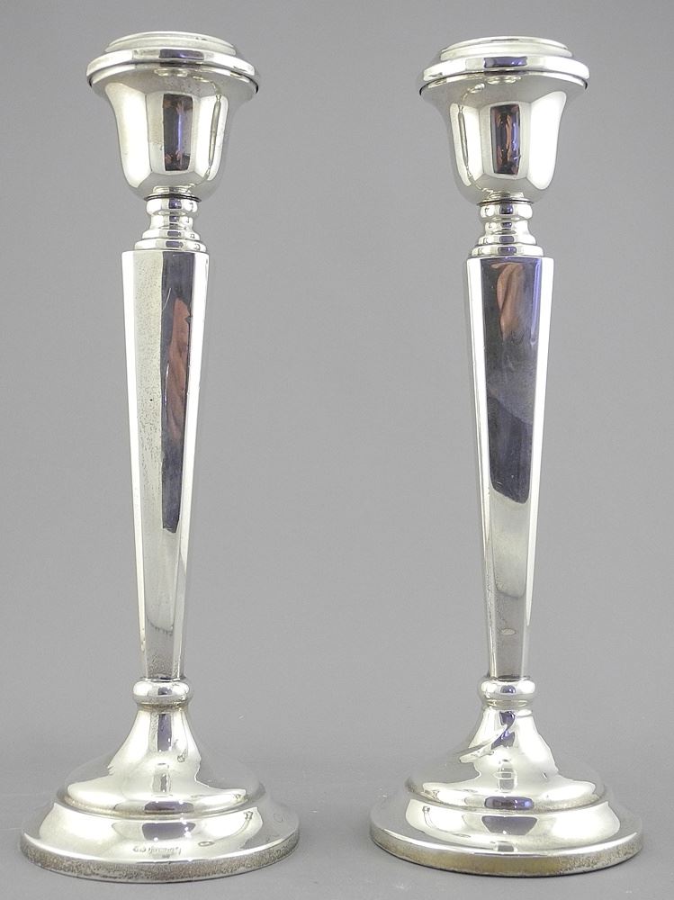 LOT 188 Pair of Hallmarked Silver Candlesticks, Weighted, 10 1/8"h, TW 770g. Estimate: $300 - $400 Auction Date: Tuesday, October 28 2025 at 4:00 PM
