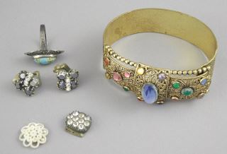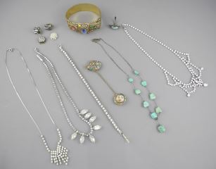 LOT 142 Collection of Costume Jewelry with Sulphide Clip/Turquoise Ring/ Rhinestones. Estimate: $60 - $120 Sold For: $40 Auction Date: Tuesday, October 28 2025 at 4:00 PM