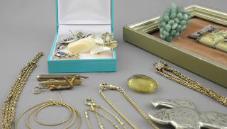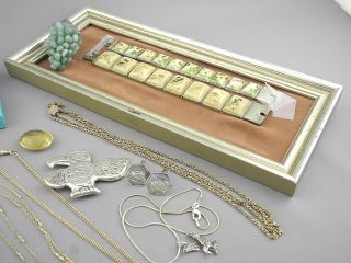 LOT 163 Lot of Jewelry Items Including Two Asian Bracelets (framed). Estimate: $50 - $100 Sold For: $70 Auction Date: Tuesday, October 28 2025 at 4:00 PM