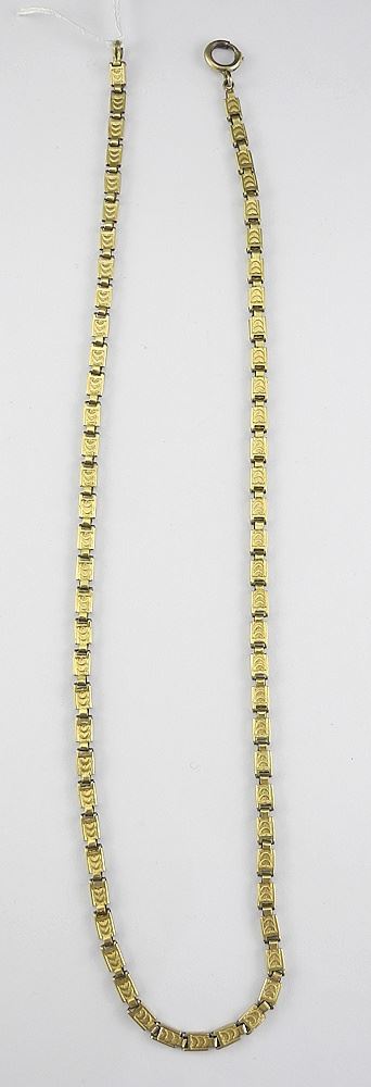 LOT 218 Gold Tone Metal Necklace, 16"L, 7.8g. Estimate: $50 - $100 Sold For: $25 Auction Date: Tuesday, October 28 2025 at 4:00 PM