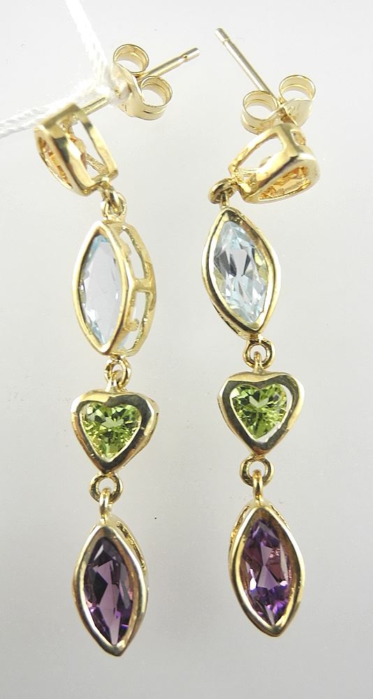 LOT 100 14K (marked) Yellow Gold & Multi- Gemstone Dangle Earrings, 1 1/2"h, 2.8g. Estimate: $150 - $200 Sold For: $190 Auction Date: Tuesday, October 28 2025 at 4:00 PM