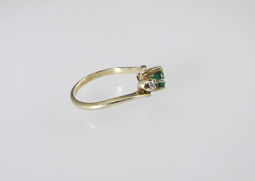 LOT 110 10K (marked) Yellow Gold Synthetic Emerald & Diamond Ring, Size 5 1/4, 1.9g. Estimate: $100 - $150 Sold For: $100 Auction Date: Tuesday, October 28 2025 at 4:00 PM