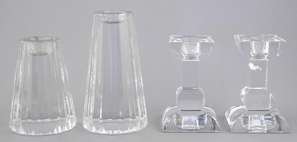LOT 103 Eight Villeroy & Boch Crystal Candlesticks (4-7 7/8"h) ^ Pair of Glass Candlesticks. Estimate: $80 - $100 Sold For: $55 Auction Date: Tuesday, October 28 2025 at 4:00 PM