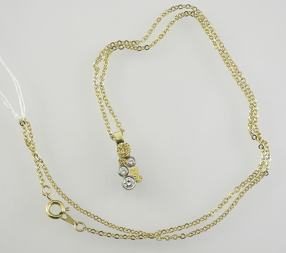 Karl Stittgen Design 18K (marked) Gold & Diamond Pendant (11/16"h, 2.5 g) on Plated Chain, 17"L.