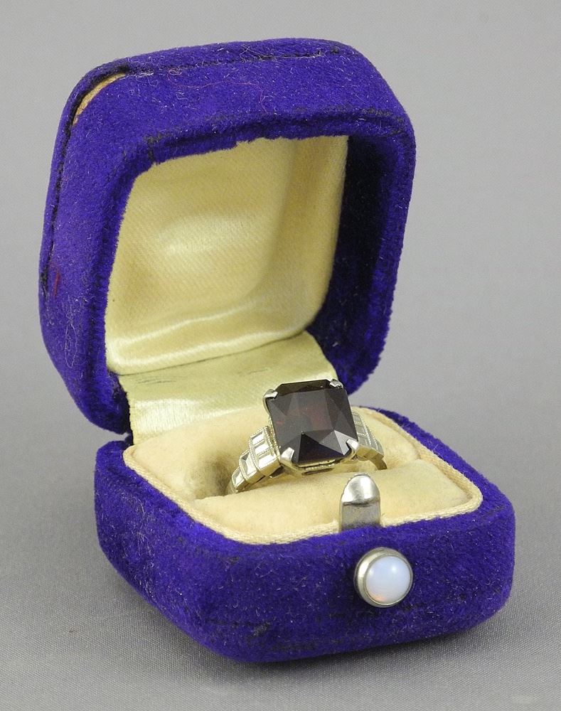 LOT 179 14K (marked) White Gold & Garnet Ring, Size 3 7/8, 2.76g, with Box. Estimate: $150 - $300 Sold For: $150 Auction Date: Tuesday, October 28 2025 at 4:00 PM
