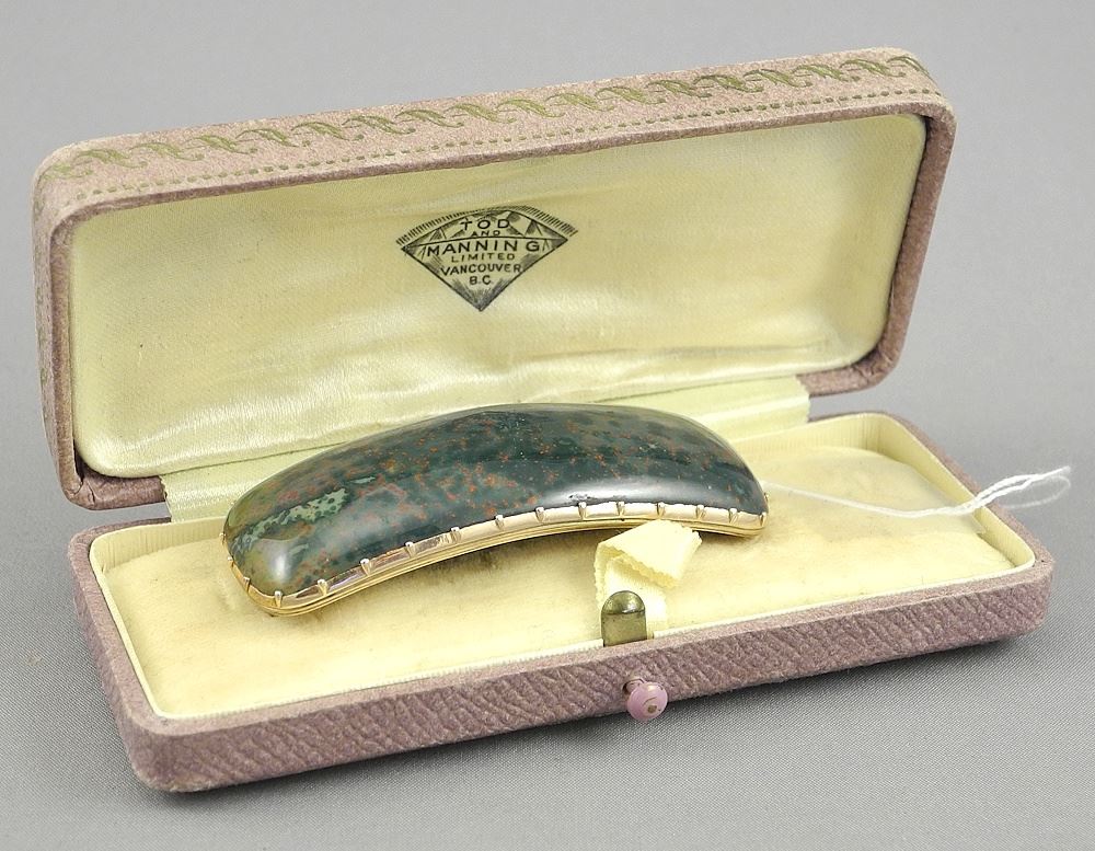 LOT 182 Georgian Gold Tone Metal & Bloodstone & Plaited Hair Brooch Dated 13 Jan 1808. Estimate: $100 - $200 Sold For: $250 Auction Date: Tuesday, October 28 2025 at 4:00 PM