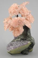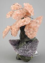 Chinese Amethyst & Rose Quartz Gemstone Bonsai Tree, 6 1/2"h.