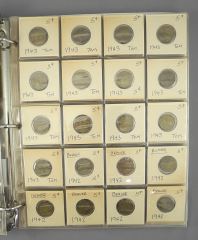 LOT 284 Canada 1922-1962 Geo V, Geo VI Early QEII 5 Cent Collection, Includes WWII Tombacs etc. Estimate: $100 - $120 Sold For: $60 Auction Date: Tuesday, October 28 2025 at 4:00 PM