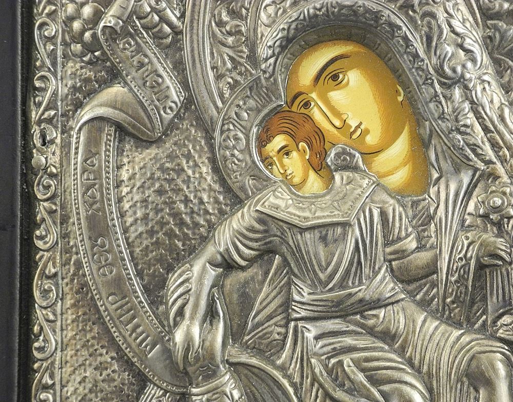 LOT 350 Oil Copy in .950 (marked) Silver of a Byzantine Icon with COA, 7 1/8 x 5". Estimate: $80 - $120 Auction Date: Tuesday, October 28 2025 at 4:00 PM