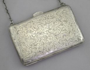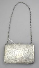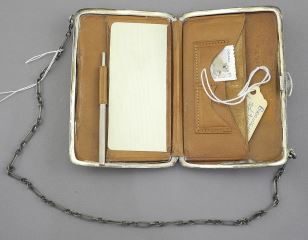 LOT 121 Hallmarked Silver Purse with Notepad , 4 1/4"w, TW 101g. Estimate: $120 - $180 Sold For: $120 Auction Date: Tuesday, October 28 2025 at 4:00 PM