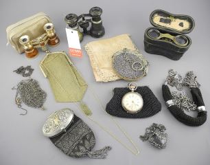 Collection of Change Purses/.800 Pocket Watch/Opera Binoculars.