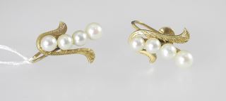 LOT 156 Pair of 10K (K10) Gold & Pearl Earrings, 3/4"h, 4.0g. Estimate: $200 - $300 Sold For: $160 Auction Date: Tuesday, October 28 2025 at 4:00 PM