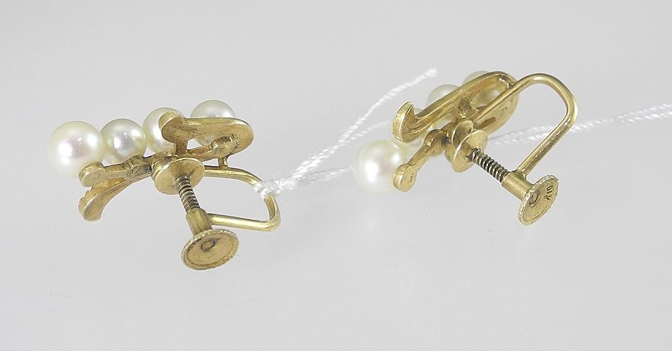 Pair of 10K (K10) Gold & Pearl Earrings, 3/4"h, 4.0g.