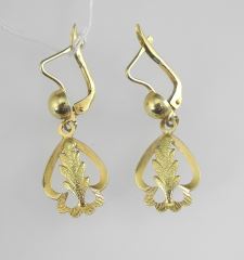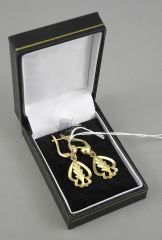 LOT 175 Pair of Italian 18K (marked 750) Yellow Gold Earrings, 1 1/4"h, 4.1g, with Box. Estimate: $400 - $500 Sold For: $450 Auction Date: Tuesday, October 28 2025 at 4:00 PM