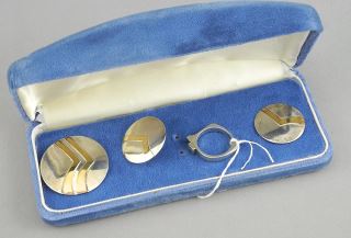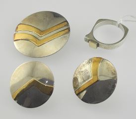 Sterling Silver & 10K Modernist Demi-Parure, Ring Size 7, TW 17.0g, with Box.