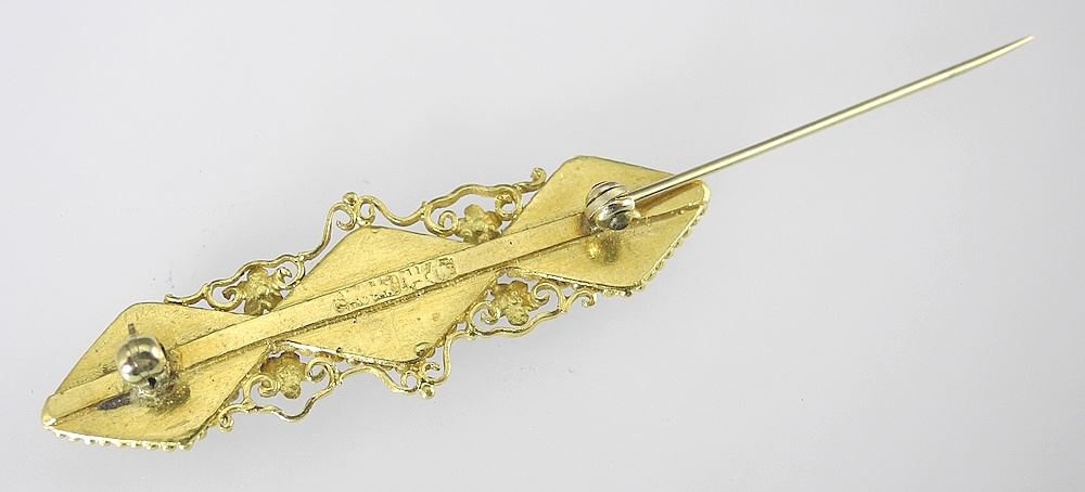 LOT 10 Chinese Gold/Gilt Silver & Jade Brooch, 2"w, 8.2g. Estimate: $200 - $400 Sold For: $225 Auction Date: Tuesday, October 28 2025 at 4:00 PM